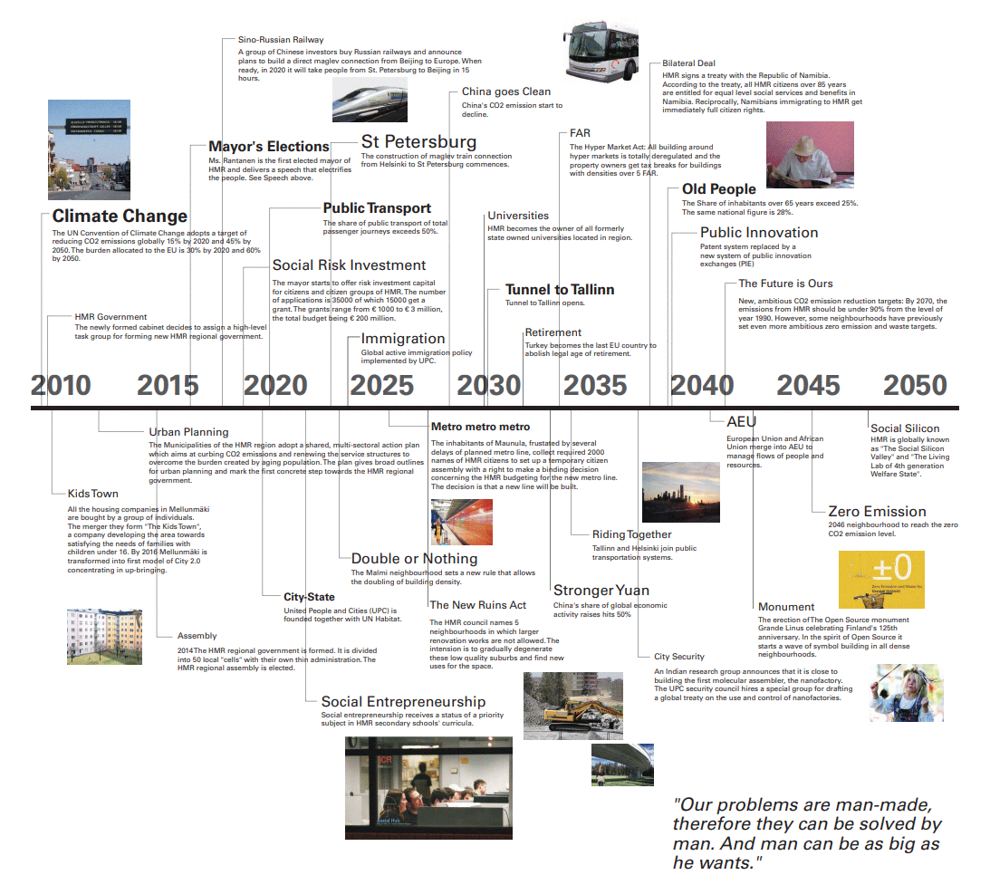 The Greater Helsinki Vision 2050 set out to create a vision for a territory that had no formal governance structures of its own. In retrospect, it can be seen as an attempt to bring “unmanageable” metropolitan regions within reach – by imagining alternative futures that stretched further ahead than planning usually dares to go.